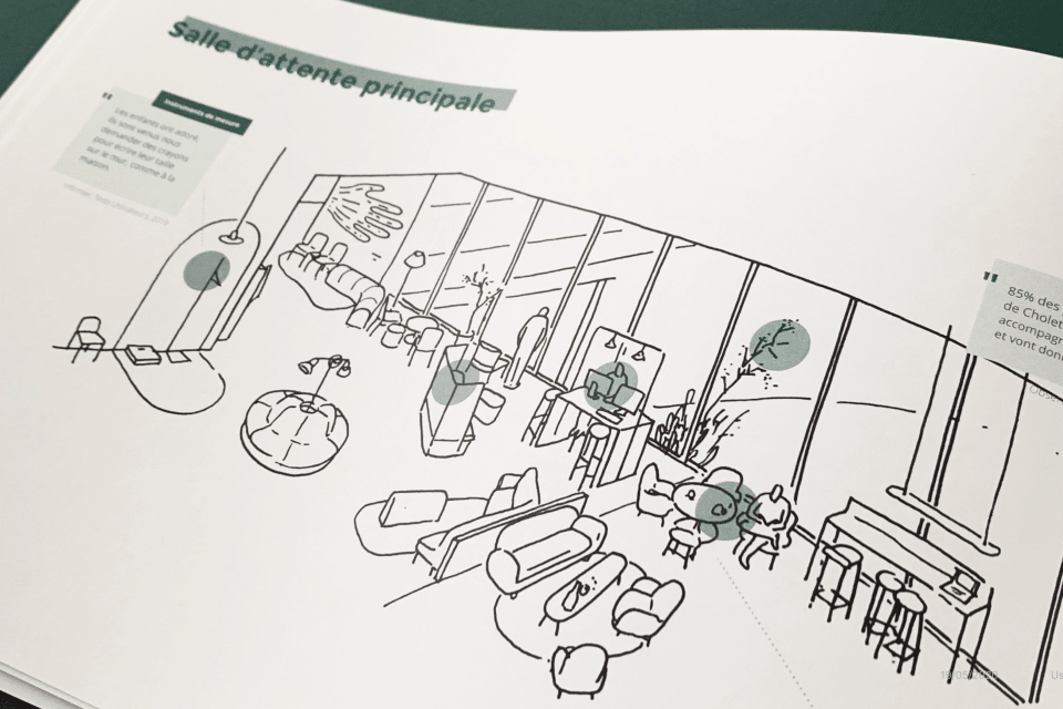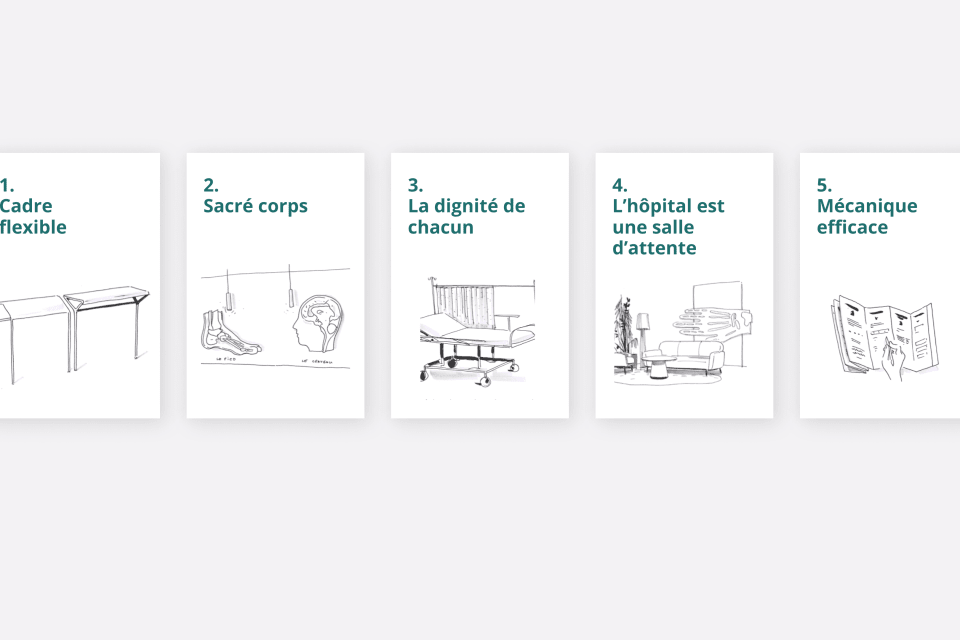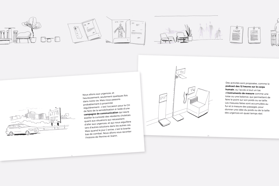 Nous avons accompagné le CH de Cholet dans la restructuration de ses urgences, en pleine période de grèves des hôpitaux. En orientant notre travail sur les "marques d'attention" disséminées tout au long du parcours des patients, de leurs proches et des soignants, nous avons pu, peu à peu, redessiner les contours d'une expérience plus douce pour chacun.e.