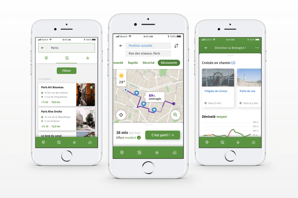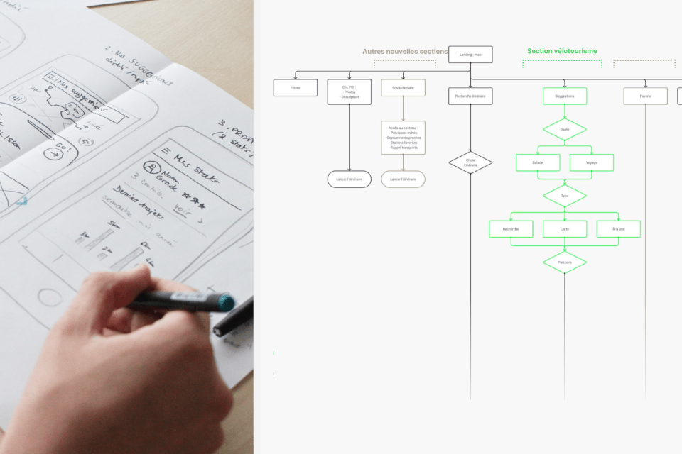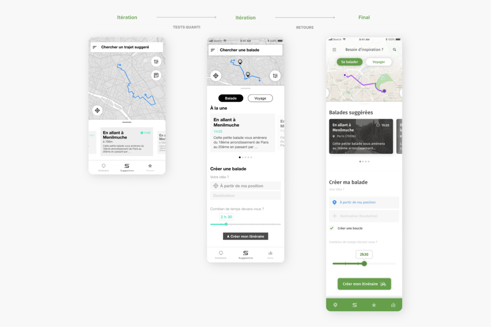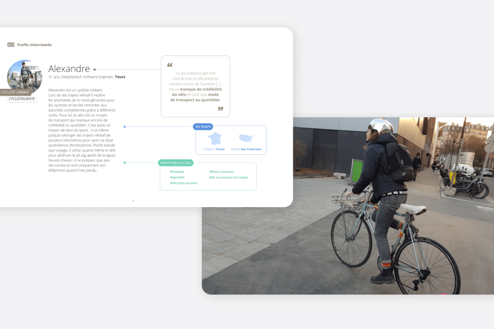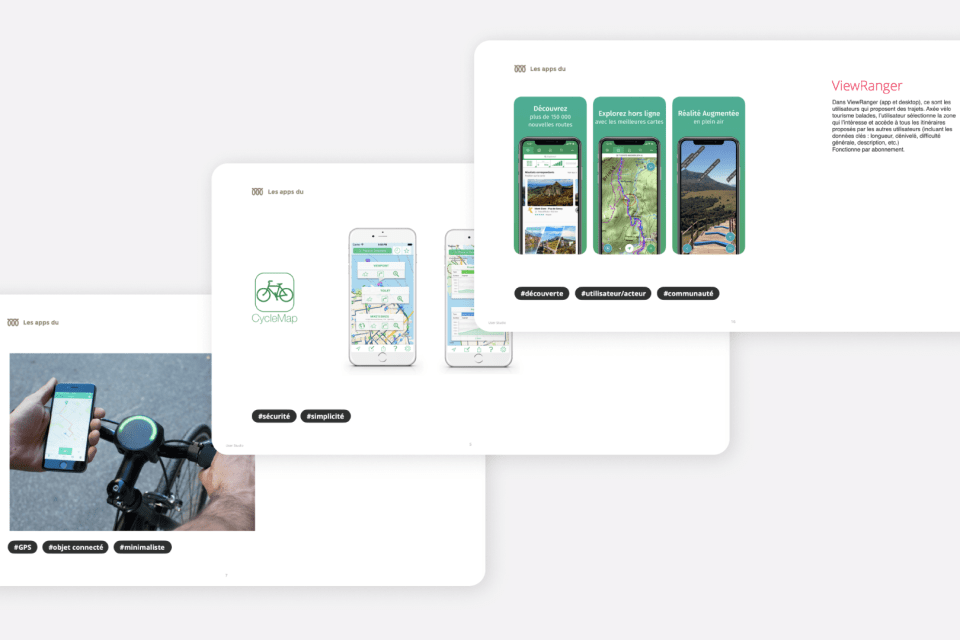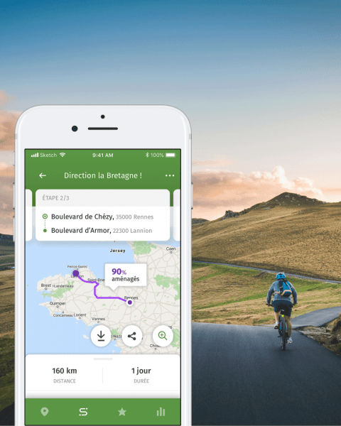 Geovelo, start-up tourangelle créée en 2010 et spécialisée dans le calcul d’itinéraires à vélo, développe une application du même nom guidant les cyclistes sur des routes avec aménagements cyclables ou sur des voies à faible circulation. Hier surtout utilisée sur des trajets urbains courts, Geovelo s’est tournée vers nous afin de refondre l’expérience globale de navigation et d'ajouter une nouvelle fonctionnalité : guider les utilisateurs lors d’itinéraires de tourisme (balades ou voyages).