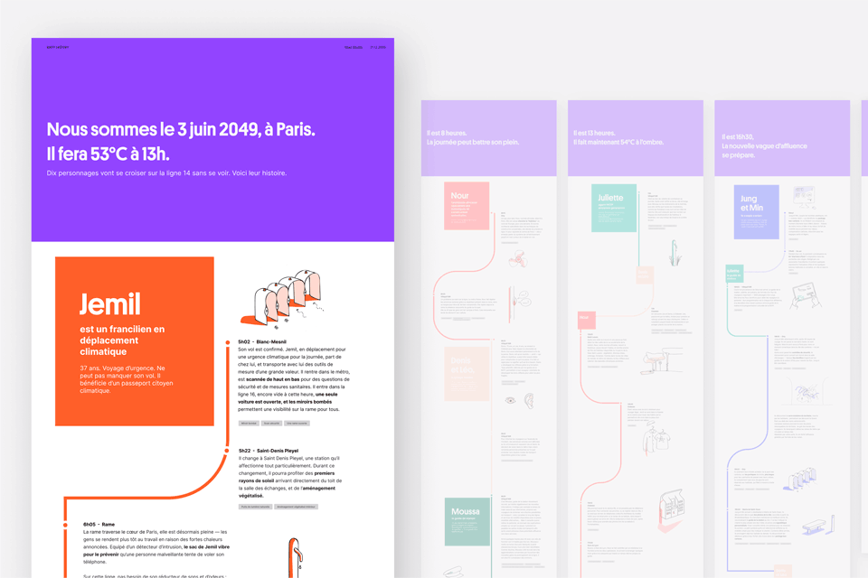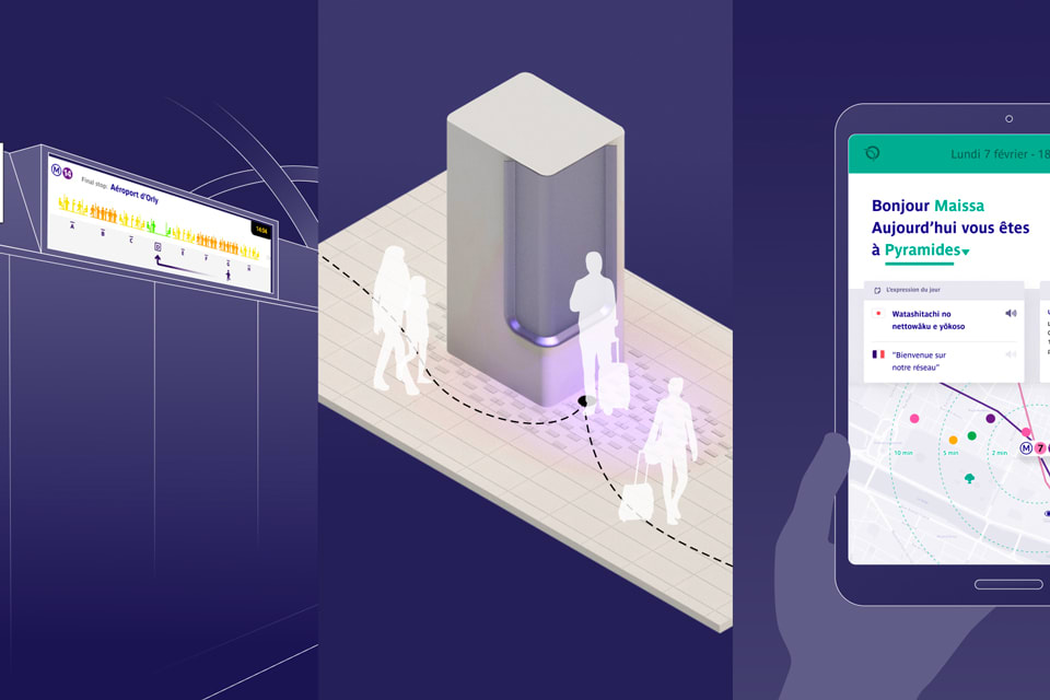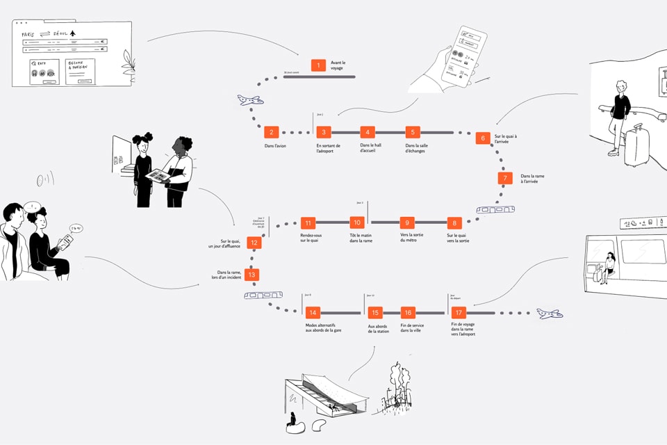 L’allongement de la ligne 14 vers l’aéroport d’Orly draine un grand nombre de défis liés aux infrastructures, aux services et aux métiers des agents. Nous avons conduit une démarche de design de services en amont des gros travaux pour dé-risquer leur réalisation, maitriser les usages et anticiper la mise en service de la ligne prévue pour les JO 2024. En s'inspirant du regard majeur du futur voyageur aérien et en jouant avec une approche prospective, une trentaine de services a vu le jour.