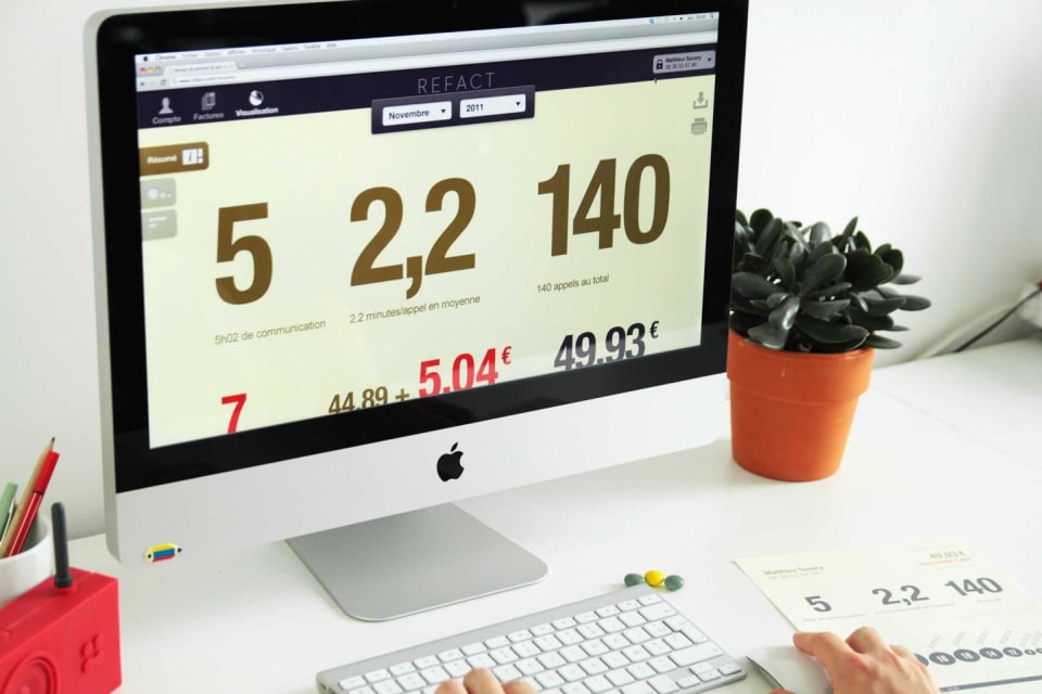 Vous avez sûrement déjà vu une facture téléphonique. Vous savez, cette liste interminable de numéros de téléphone associés à de sombres montants, tous écrits en taille 6 et collés les uns aux autres ? Et bien on en a eu un peu marre de cette facture illisible qui gâchait plus de papier qu’autre chose. L’objet de ce projet de recherche était de repenser l’expérience d’un usager à la lecture de la facture.