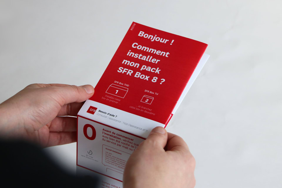 SFR nous a contactés avec un problème plutôt simple : leur mode d’emploi d'installation de box était tellement mal compris que leur SAV était submergé d’appels. Les notices sont un cas d’école de design de services, nous nous sommes donc penchés sur la question pour imaginer la nouvelle expérience du manuel.
