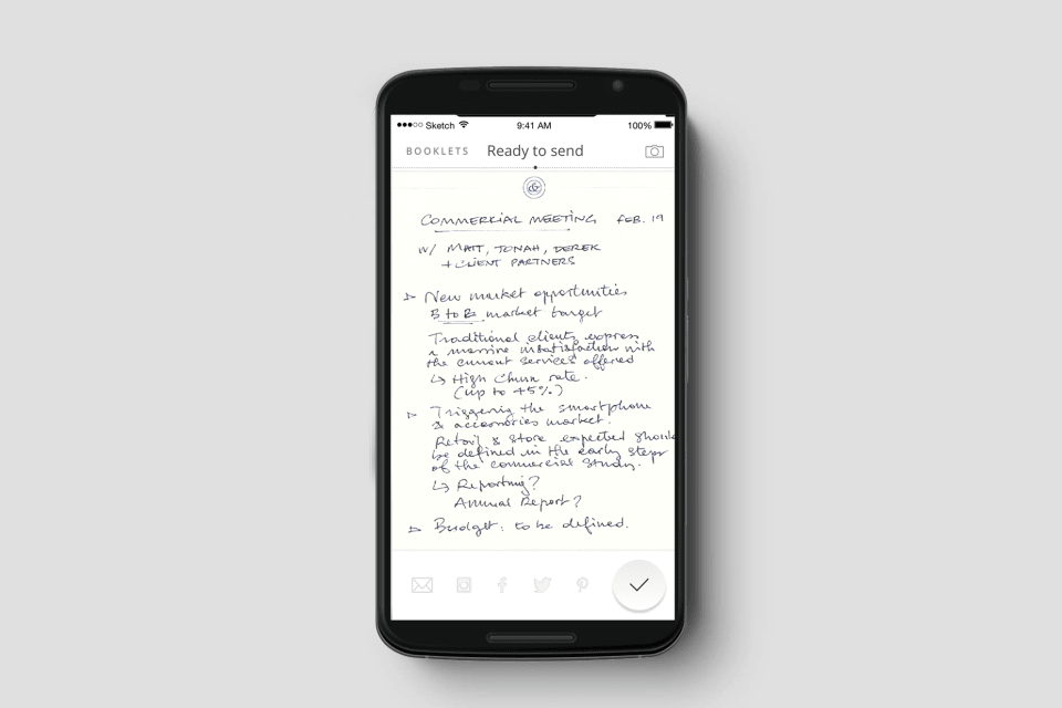 Fort de son expertise du papier d'art, le fondateur des papiers Thibierge & Comar a souhaité concevoir un carnet résolument de son temps, qui marie la spontanéité de la prise de note manuscrite et la richesse du partage qu'offre le numérique. User Studio a conçu le service et son application mobile.